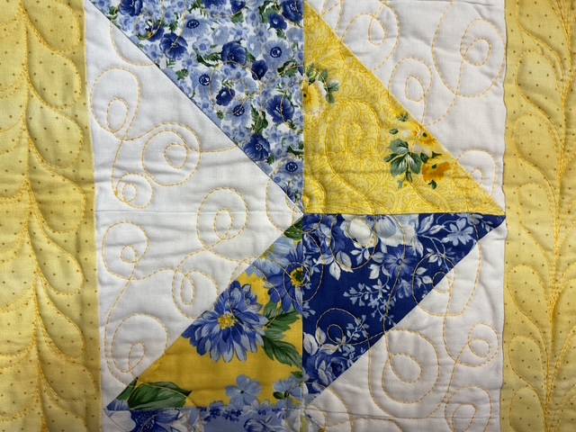 Check out my Double Loop example below. This is a close up of the quilting on my cover quilt for my Sunny Day VRD Rose Card pattern. Yes, I quilted a simple Feather design in the borders. LOL!