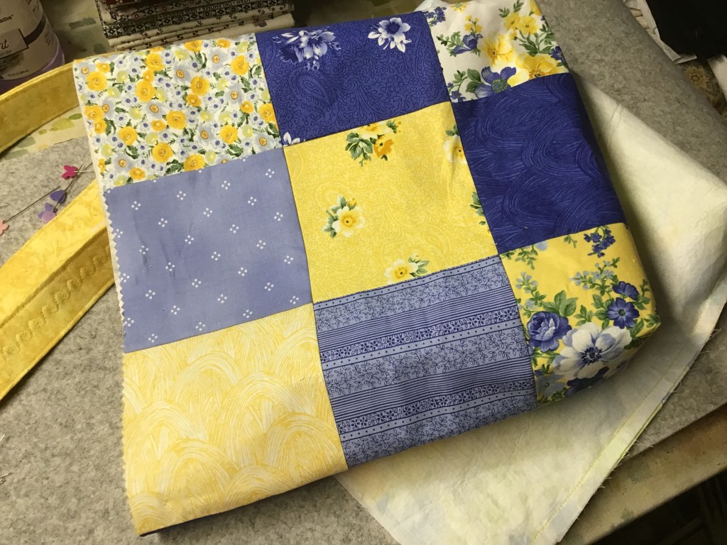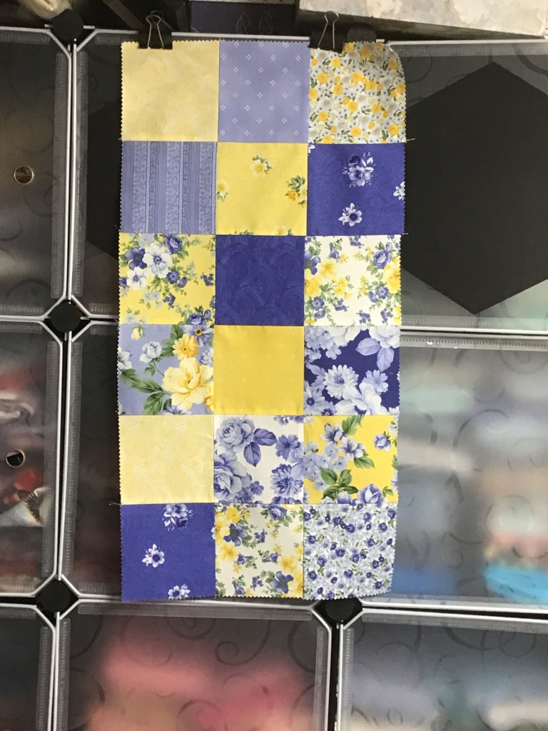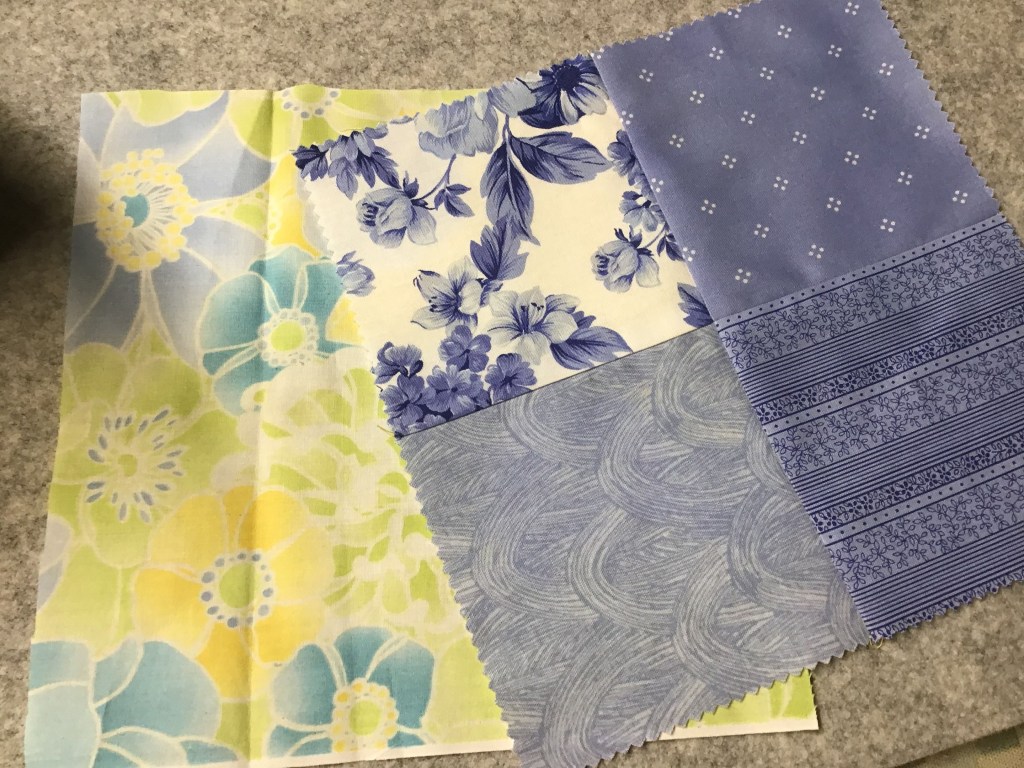 Here are the wonderful fabrics I chose for this project. I received these fat quarters in a fabric exchange a few years ago and never could find a project I wanted to use them for …. until now. I love that they are blue and tan, but even more I love that they are contemporary and would be appealing for men as well as women.