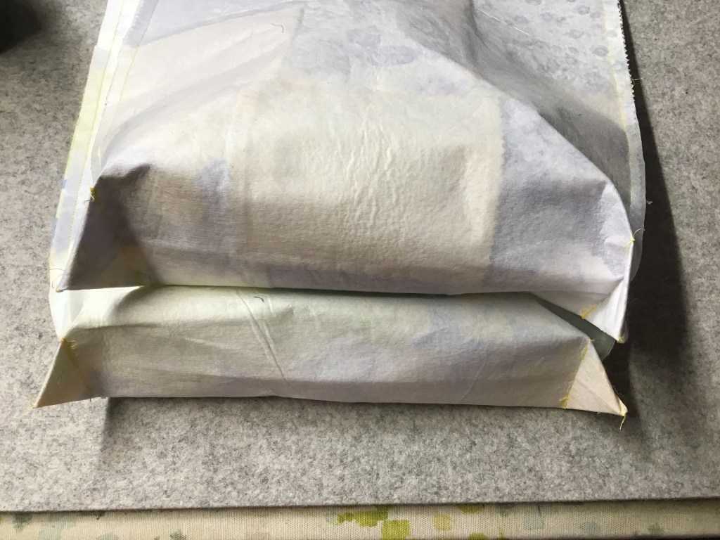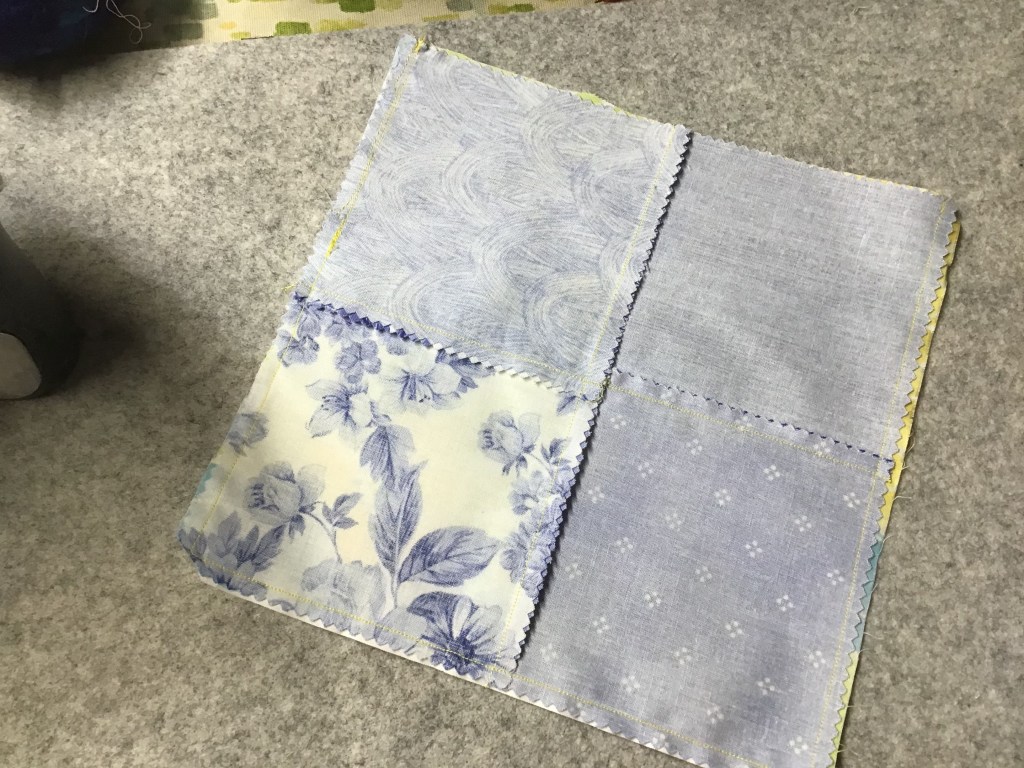Next I made my pockets and stitched them to the place mat front. I went ahead and stitched the pockets close to the raw edges so that when I sewed the place mat front and back together, the pockets wouldn’t get crazy on me and slide about.