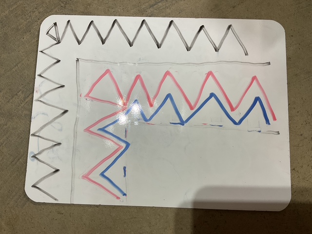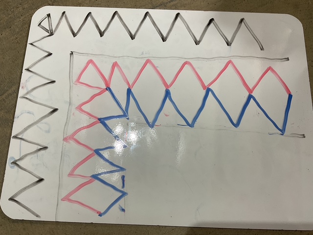 Above is the Zig Zag design doodled on my white board with my trusty dry erase marker. Easy piezy. Really.