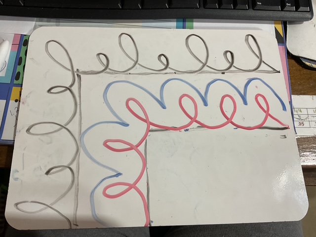 Here’s my Hillside doodle on my white board. Fun, huh? I really like using this design because curves can be very forgiving.
