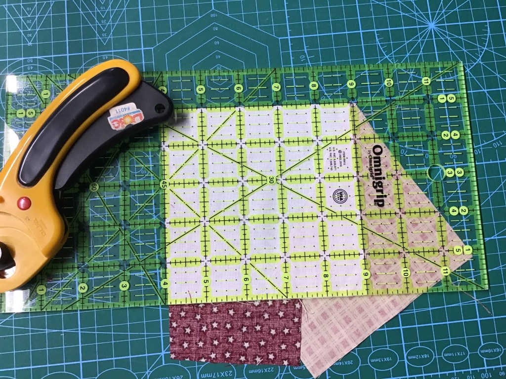 Now all of my quartets are pressed, it’s time to cut the units. Do you stack your pieced strip units for cutting? I do, and here’s a technique I learned a long time ago — stagger the strips when you layer then so that seams are not sitting on top of each other. Cutting is a lot easier and more accurate when you are not trying to cut through a big lump of seams.