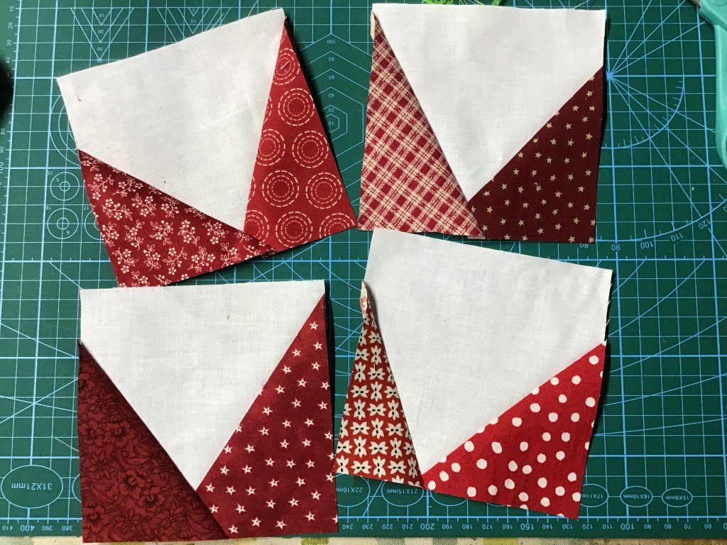 Because I pressed all my seams in each quartet the same direction, sewing the units together is really easy as the seams matched up and nestled together (awwww! They’re so sweet!) when I layered them right sides together.