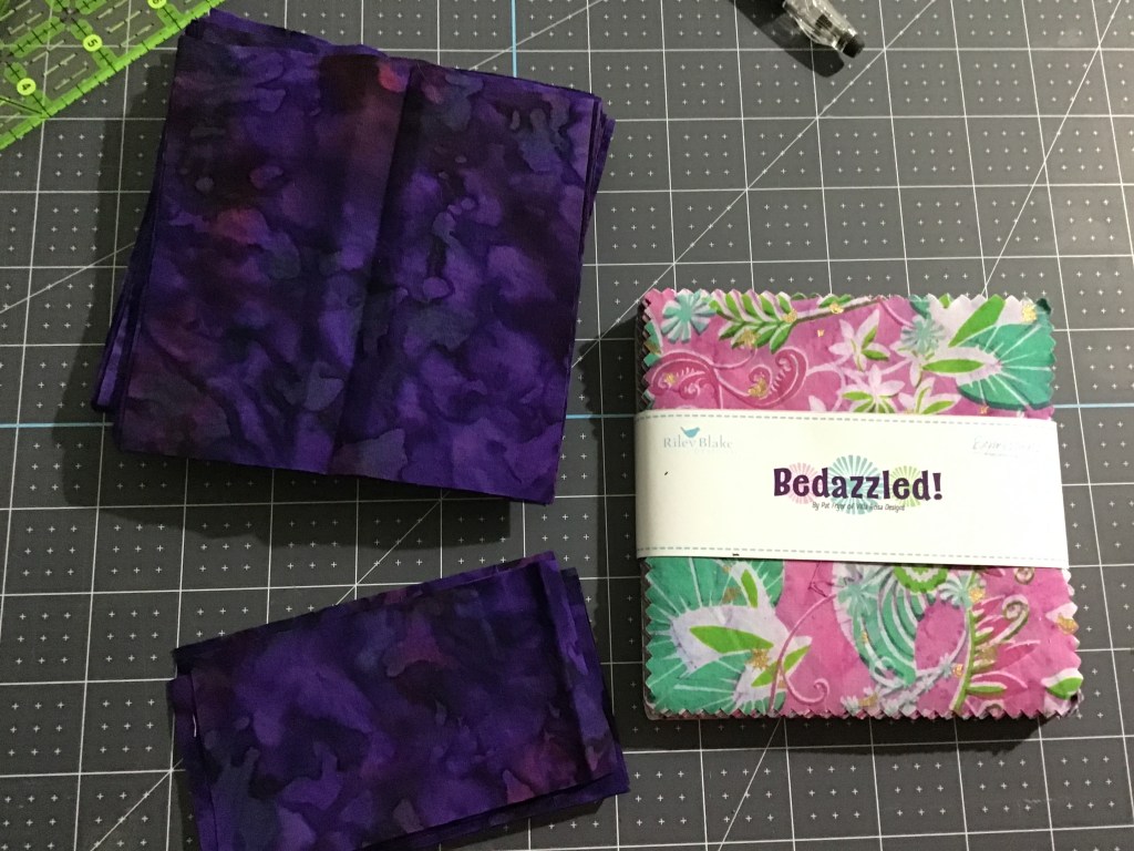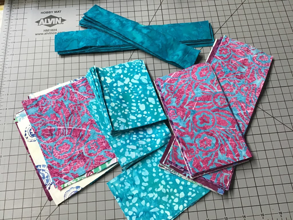 With the first stack, we’re going to cut our FQs into strips and then into fat rectangles and squares.