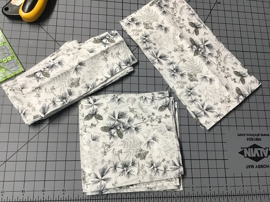 Let’s get started with our cutting. If you feel comfortable layering a couple fat quarters with the right side facing up, the cutting goes super fast. But if you are only comfortable cutting one layer at a time, that works great too. You do you.