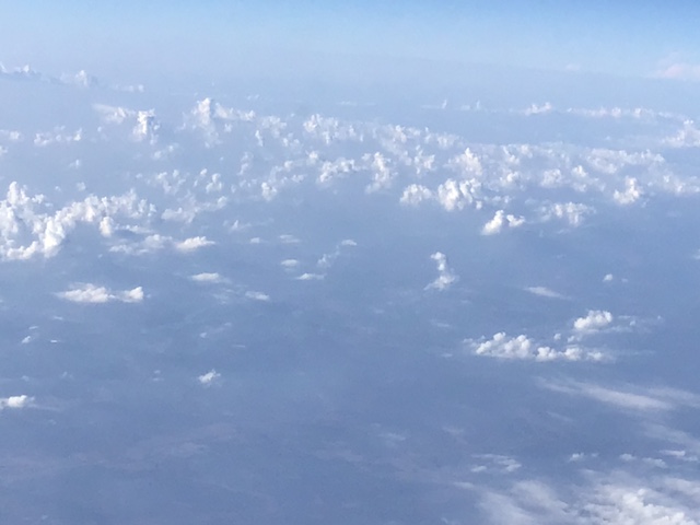 Check out these really cool clouds I saw from the plane. I’ve never seen clouds quite like this before with strange finger-like projections on the top of the clouds. You might need to zoom in on the photos to see the weirdness.