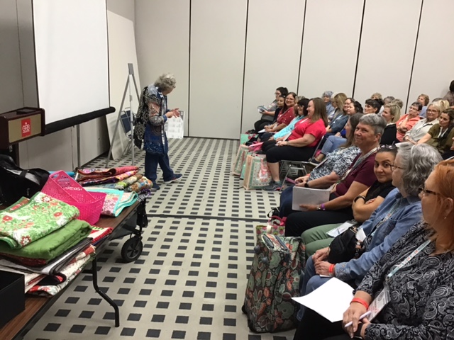 There ended up being well over 100 people in attendance to see what was new with Villa Rosa! And to see all the quilts, too! Amazingly, we showed every single one we brought upstairs. It was crowded and standing room only — just the way we like it. YAY!