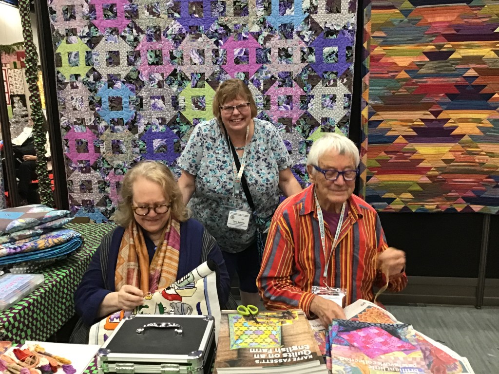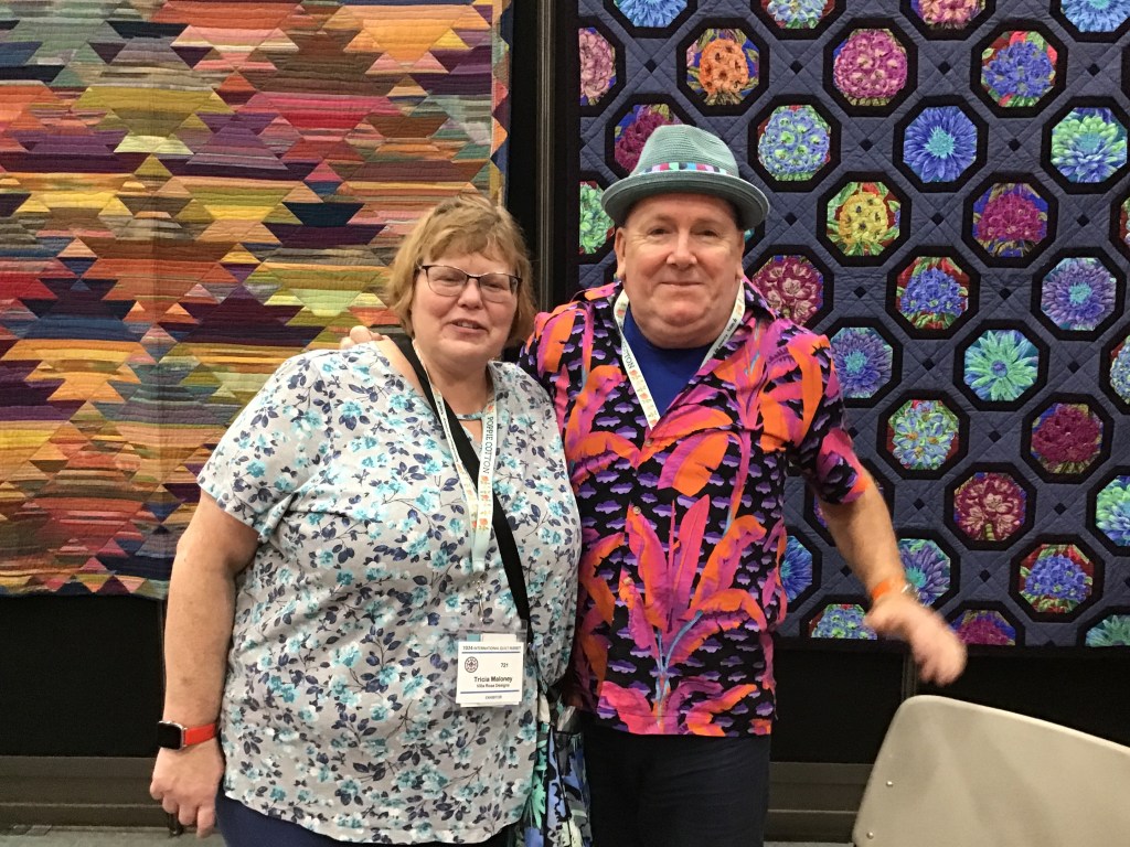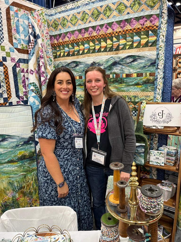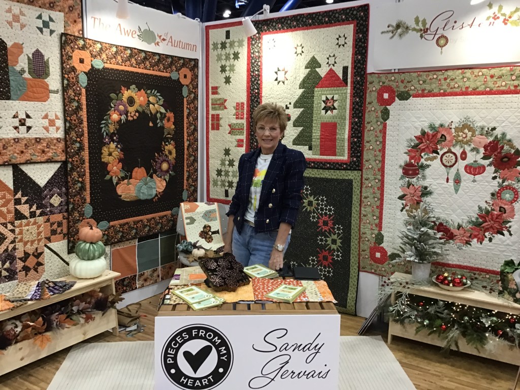 I was thrilled that our quilting partners, Hoffman, were in the booth right beside us. It was great seeing my Hoffman pal, Sandy, again. Oops, I never did take any photos of their booth. Mea culpa…..