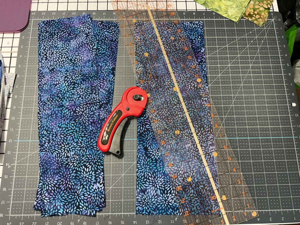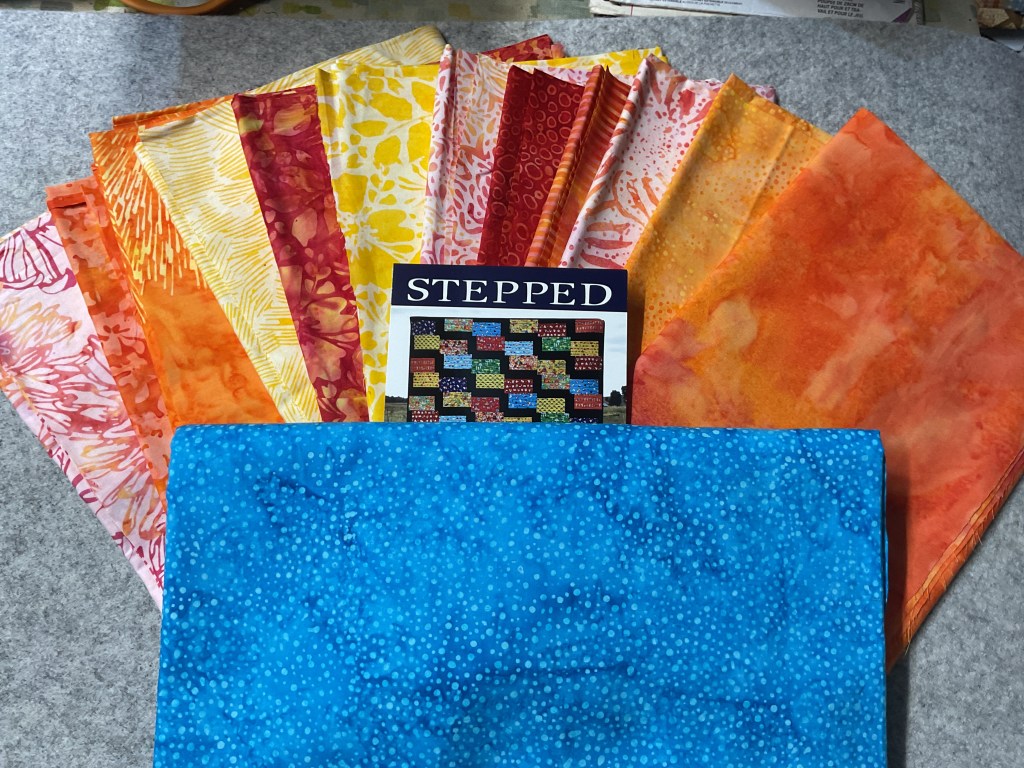Of course, our first thing to do is gather up our fabrics. Today I’m using a lovely collection from Hoffman Fabrics called Sweet Breeze. It’s a great choice today as we end summer and slide into fall. Sadly, this is an older fabric collection and probably isn’t available anymore, but happily Jason Yenter has a gorgeous fall collection called Falling Leaves, you can find it HERE – I think his wonderful fabrics would make great Leaves.