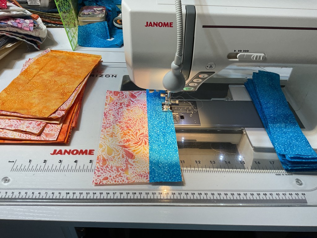 I went ahead and sewed all of the HSTs for my first 2 blocks at one time. Do likewise if you wish.