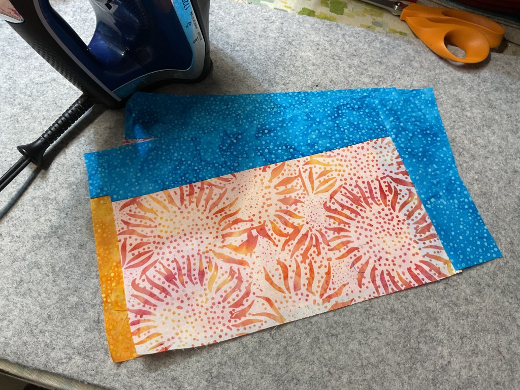 All right, let’s head over to the ironing board to press these HSTs open. Don’t forget to cut off the little dog ears on the corners so your piecing will be more accurate.