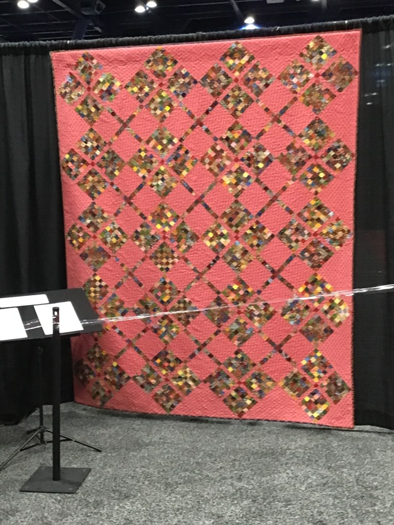 I thought it would be fun to talk about magical 2.5″ squares today. If you read last week’s post about my shop hop around Chicago with Pat following the H&H Show, you may have noticed I bought quite a few 2.5″ Mini Charm Packs (see my photo below). And you might have wondered what the heck I was going to do with all of that eye candy besides tucking them away or dropping them into a canning jar on a shelf to look sew adorable.