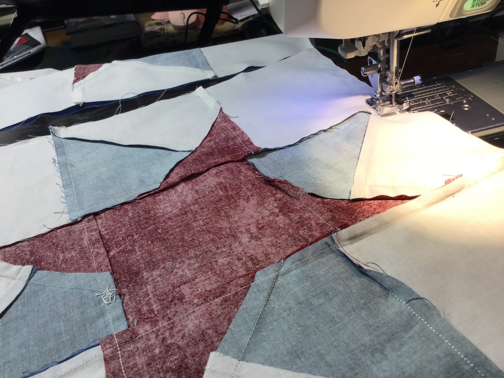 I thought it might be helpful to everyone if I did a tutorial of my new table runner, Crazy Stars. It was hard to figure out how to illustrate the pattern so it made sense. And, because I don’t trust my humble illustrations, I am going to show you step by step how to make the stars in Crazy Stars.