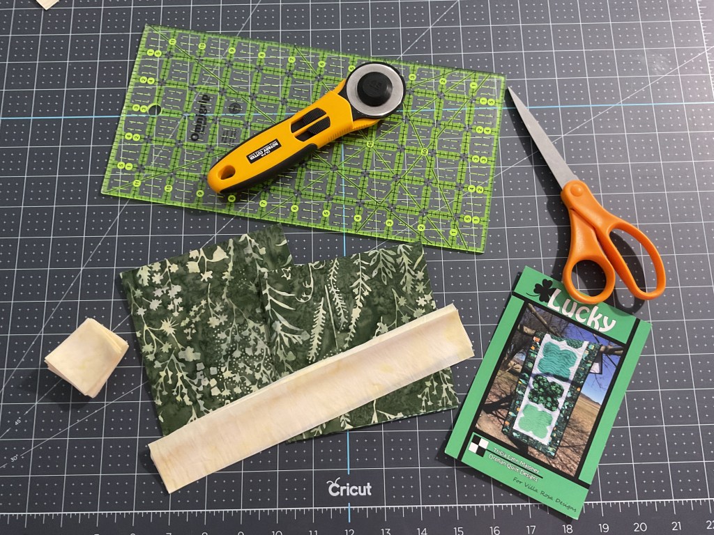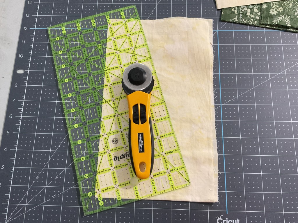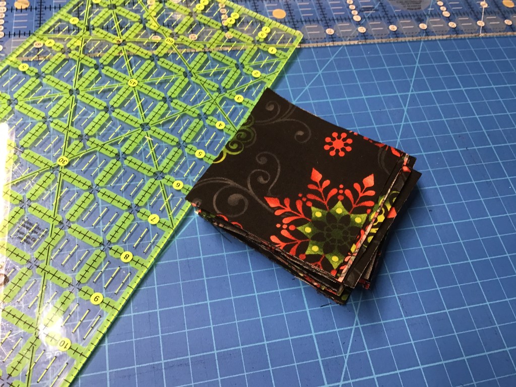 With the first stack, we’re going to cut our FQs into strips and then into fat rectangles and squares.